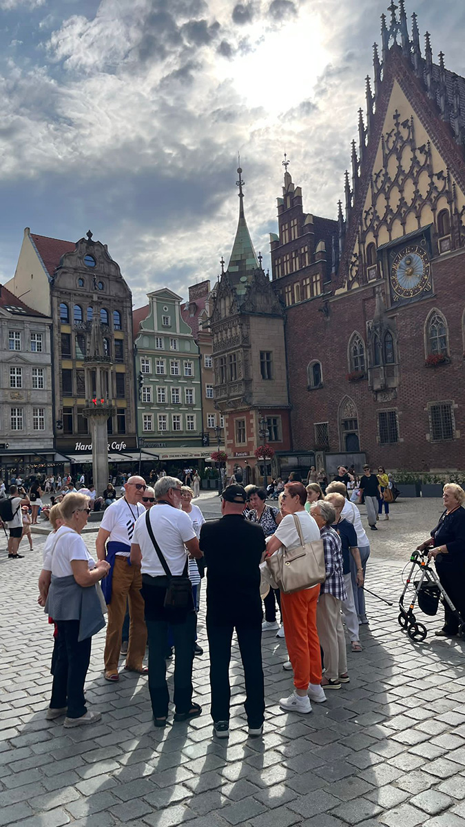 W godzinach popołudniowych – przy pięknej słoneczne pogodzie zwiedzano zabytkowy wrocławski rynek.